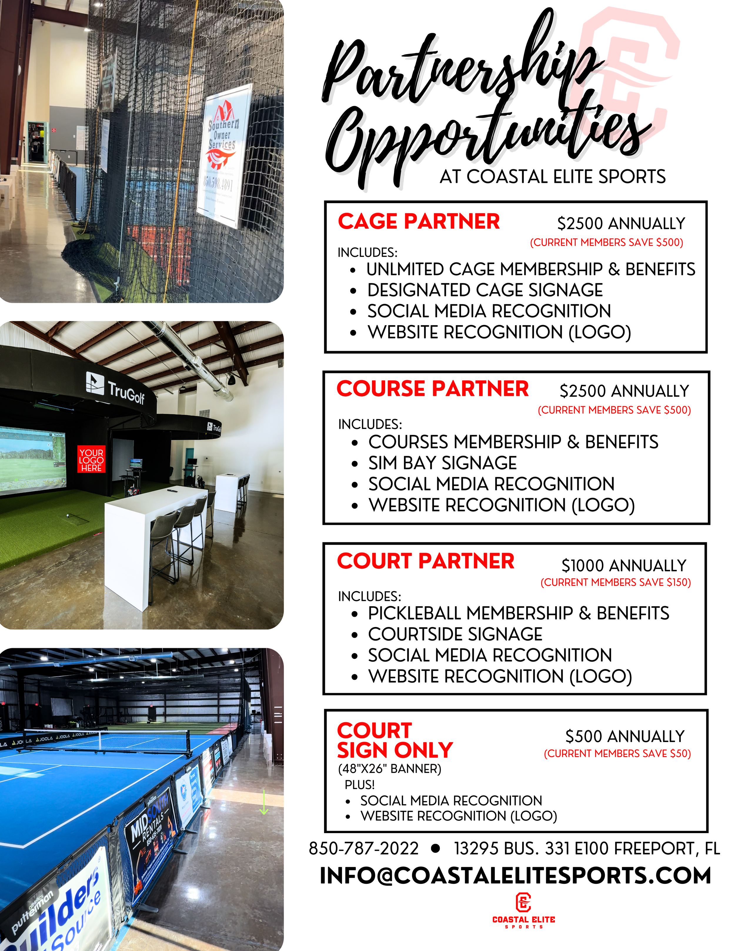 Partnership Benefits: Most of our partnership packages include Memberships and/or facility use for you.